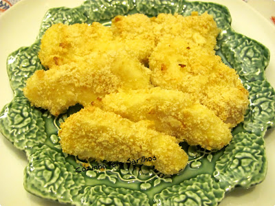 Um dia deste o V. lembrou-se de panar e levar ao forno, ficou delicioso, já repetimos umas 3 vezes e só não foi mais porque leva farinha.